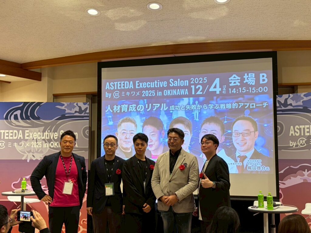 2025年12月4日(木)~6日(土)沖縄・宜野湾コンベンションセンターにて開催されたビジネスカンファレンス「ASTEEDA Executive Salon 2025 in Okinawa」において、「人材育成のリアル:成功と失敗から学ぶ戦略的アプローチ~効果的な人材育成の具体策:実践事例に学ぶ成功要因~」をテーマとしたセッションに、弊社代表の金沢景敏が登壇いたしました。