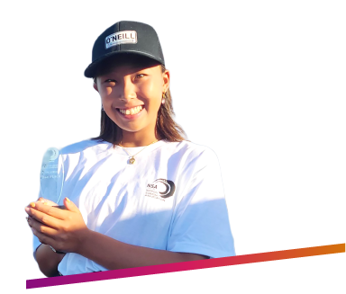 また、自宅から海まで1時間半かかり練習は週末のみという環境だったが、持ち前の向上心で急成長を遂げる。 現在は更なるレベルアップを目指し、日本のサーフィン道場・千葉県一宮へ拠点を移し、全日制の高校に通いながら活動中。